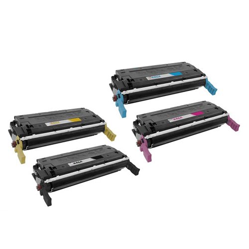 This item HP 645A (C9730A) includes 1 C9730A black, 1 C9731A cyan, 1 C9733A magenta and 1 C9732A yellow remanufactured toner cartridges, Print more and cost less: 13,000 pages per black and and 12,000 pages per color toner cartridge based on 5% coverage (letter/A4). It is guaranteed to perform with the following printers: HP Color LaserJet 5500,?5500dn,?5500dtn,?5500hdn,?5500n,?5550,?5550dn,?5550dtn,?5550hdn,?5550n. The functions are engineered to meet the standards of quality, stability and paper yields that exceed the standards of the others. This HP 645A remanufactured cartridge equipped with the features below: