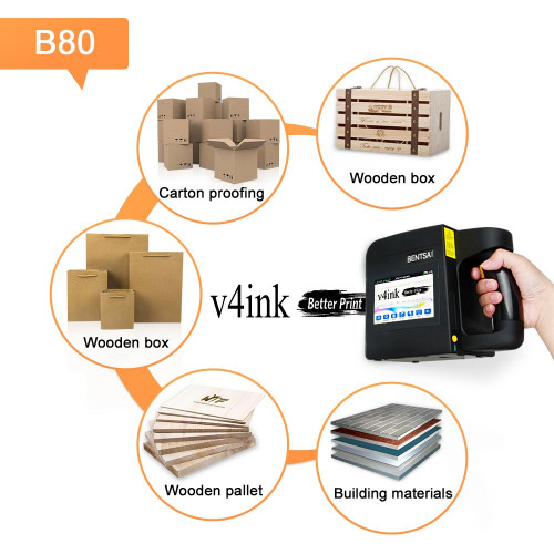 The BENTSAI B80 printer is the first handheld wide format printer in the world. 4pcs print-heads can be used individually or spliced together, font height 25mm-100mm, innovative and personalized design, can quickly print the wide format content, widely use for printing cartons, wooden boxes, fiberboards, kraft bags and other water-absorbing materials.